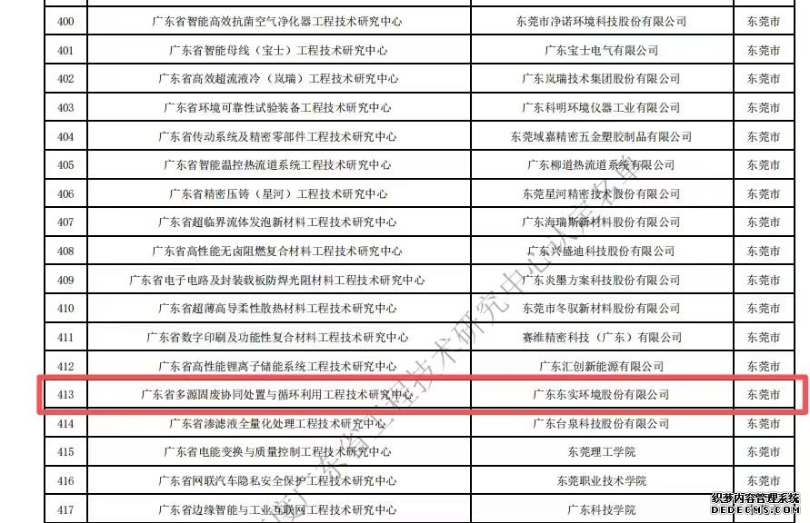 近日,广东省科学技术厅正式公布2025年度广东省工程技术研究中心认定名单。广东东实环境股份有限公司(下称“东实环境”)申报的“广东省多源固废协同处置与循环利用工程技术研究中心”成功获批认定,标志着东实环境在固废处理与循环利用领域技术创新实力、行业引领地位获得省级权威部门认可,正式跻身省级重点研发平台行列。